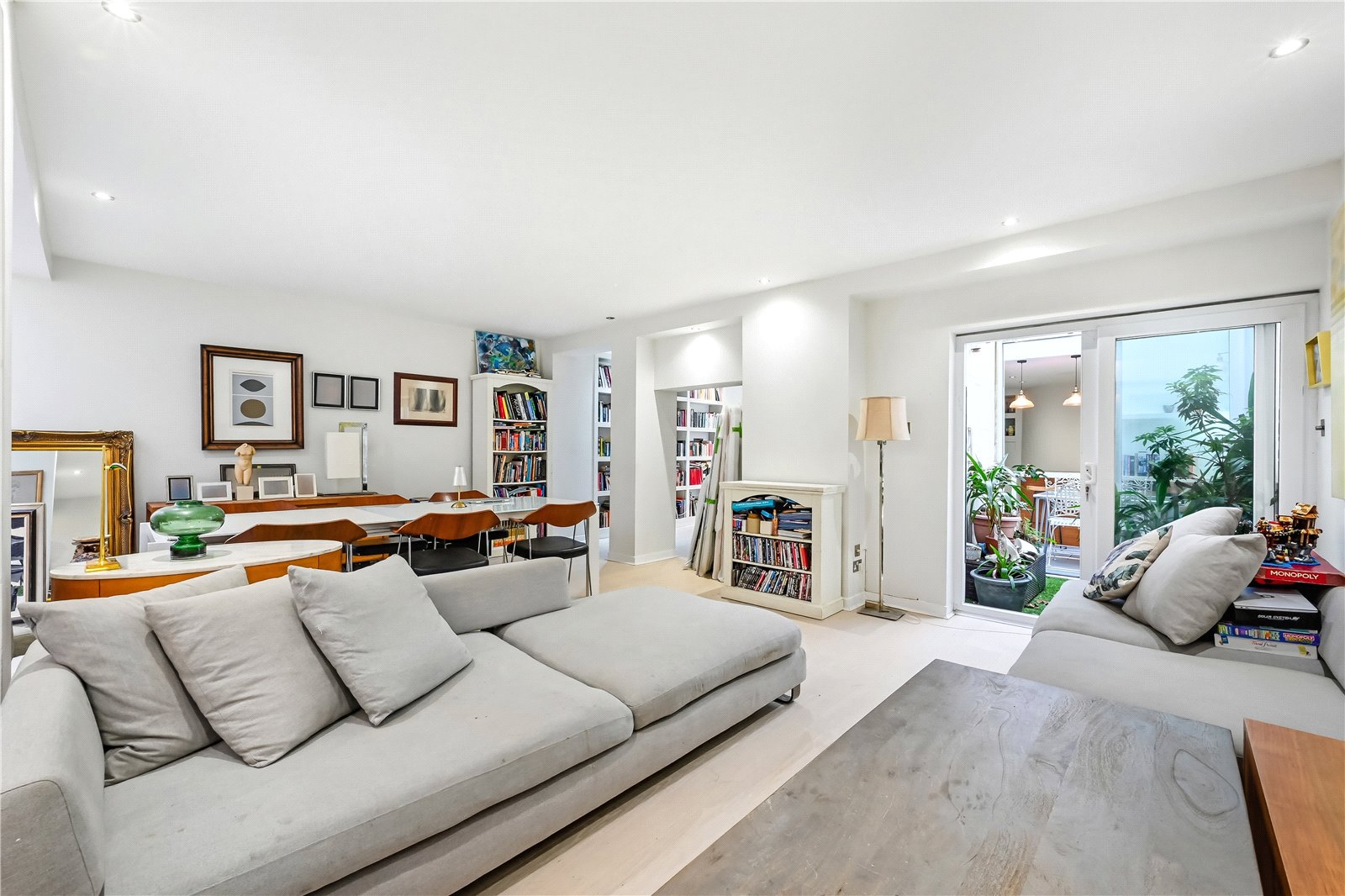 This beautifully presented apartment is arranged over two floors and has an abundance of light and space on offer. The ground floor comprises two bedrooms, both with ample storage and two bathrooms. Stairs lead down to the lower floor (with private lift access too). Here you will find a spacious open plan kitchen/living/reception room and an outside patio garden. There is also a demised loft space providing further storage on the ground floor. The flats in the building are also entitled to a key for Queen's Gardens communal garden opposite