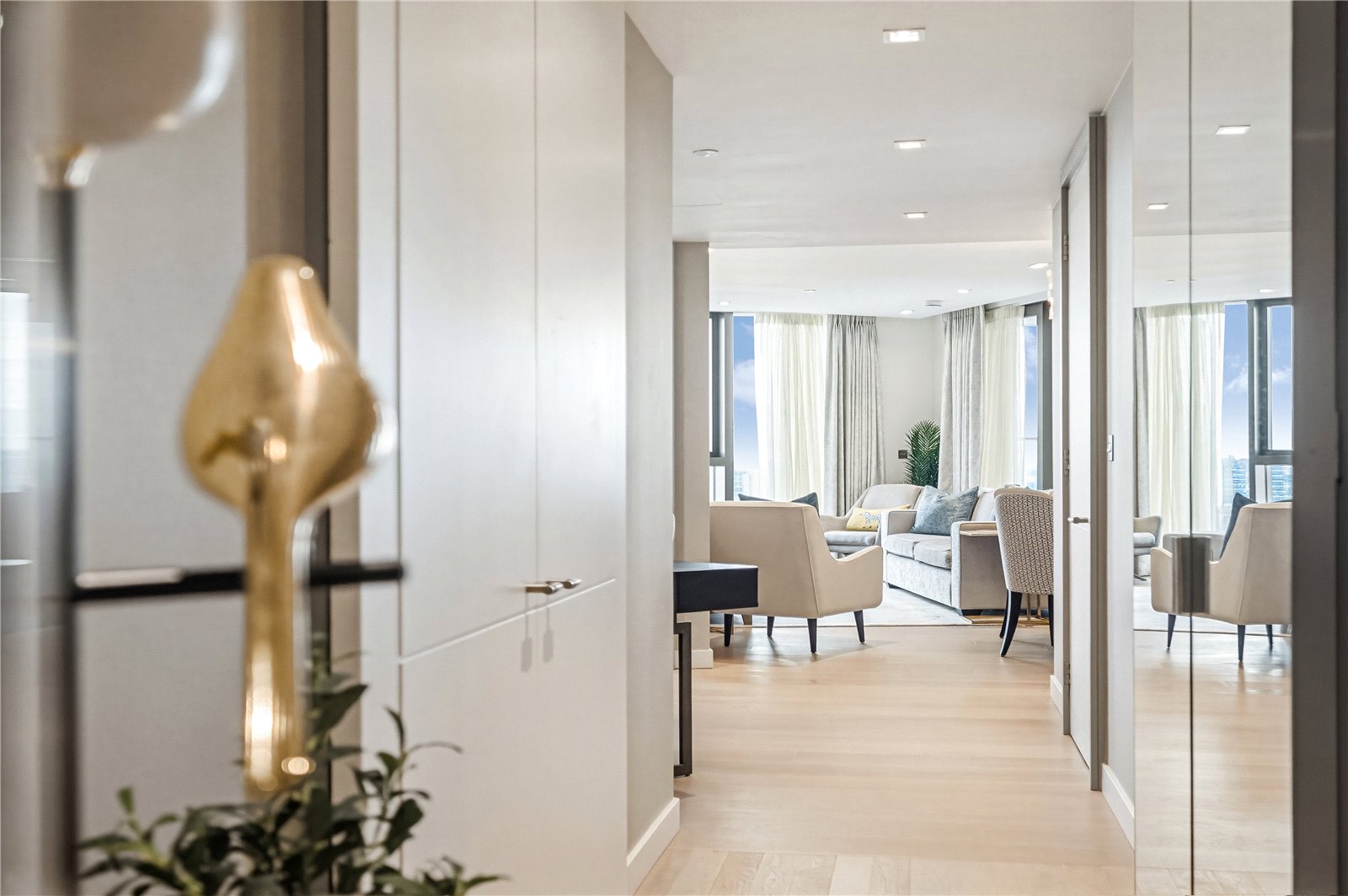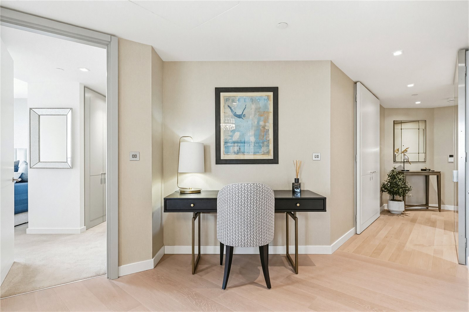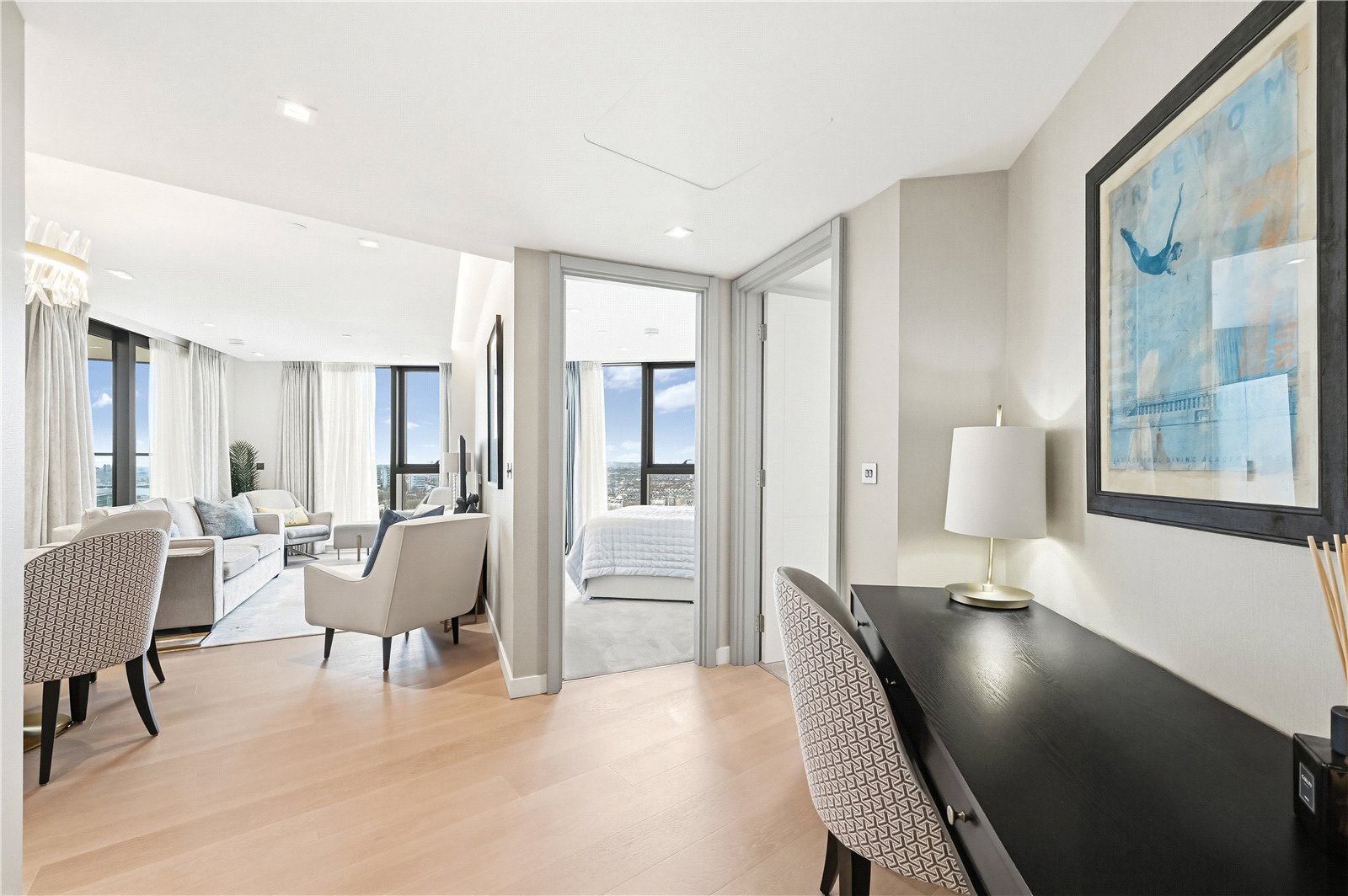 The apartment comprises, two double bedrooms with comfort cooling and underfloor heating. Principle bedroom with en-suite bathroom and family bathroom adjoining the hallway. Spacious, open plan living area with far reaching viewings of London. Private balcony set off living room with West facing views. There is also ample storage on offer throughout too.
