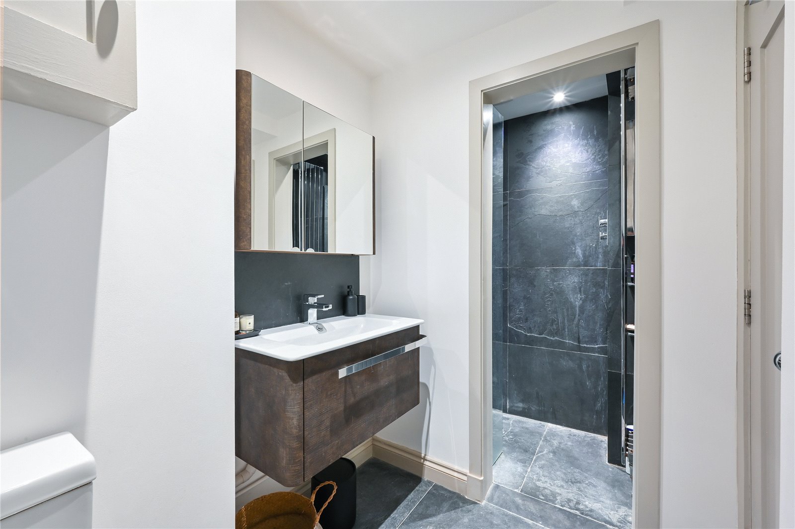 This immaculate flat is in excellent condition throughout and has been lovingly maintained by the current owners. Entering through your own front door, the spacious hallway leads through to the open plan kitchen and living room and guest bathroom. At the front of the property is the principal bedroom with plenty of storage space on offer. Walking through to the rear of the property is a secondary living space, with a plethora of light coming from the skyline panel that electrically opens. This leads through to a study/living space that the owners also use as a guest bedroom, with en-suite shower room.