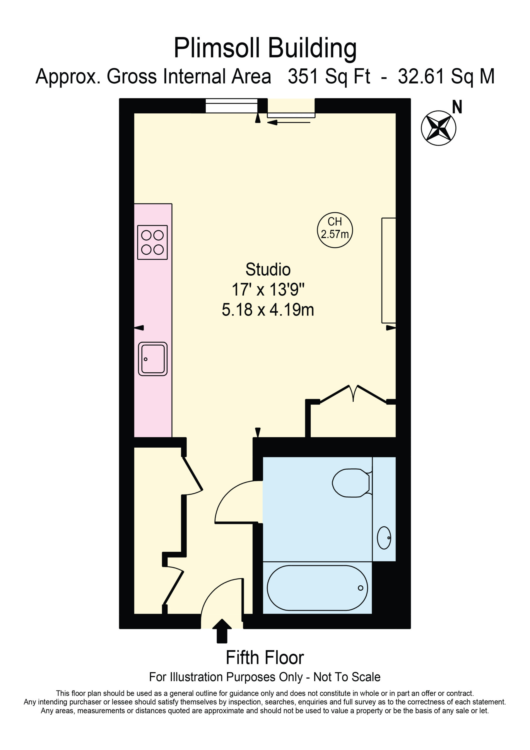 A studio apartment situated on the fifth floor of the popular Plimsoll Building in King’s Cross.