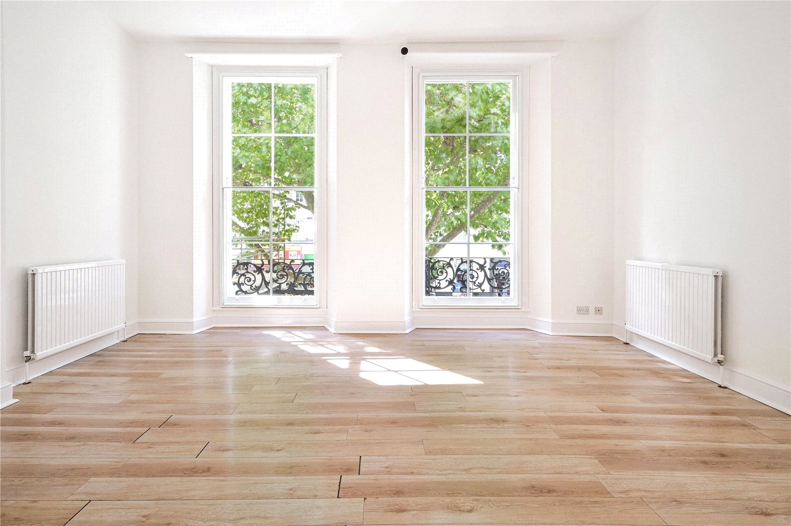 This fantastically proportioned one-bedroom apartment boasts a spacious living/dining room, a generously sized kitchen, and a bedroom with ample storage space. Enhanced by its dual west and east-facing orientation and floor-to-ceiling sash windows in the living room, the apartment is flooded with an abundance of natural light. Additionally, the apartment features hardwood flooring throughout, complemented by a balcony off the living room. The property is also double glazed, hence very quiet.