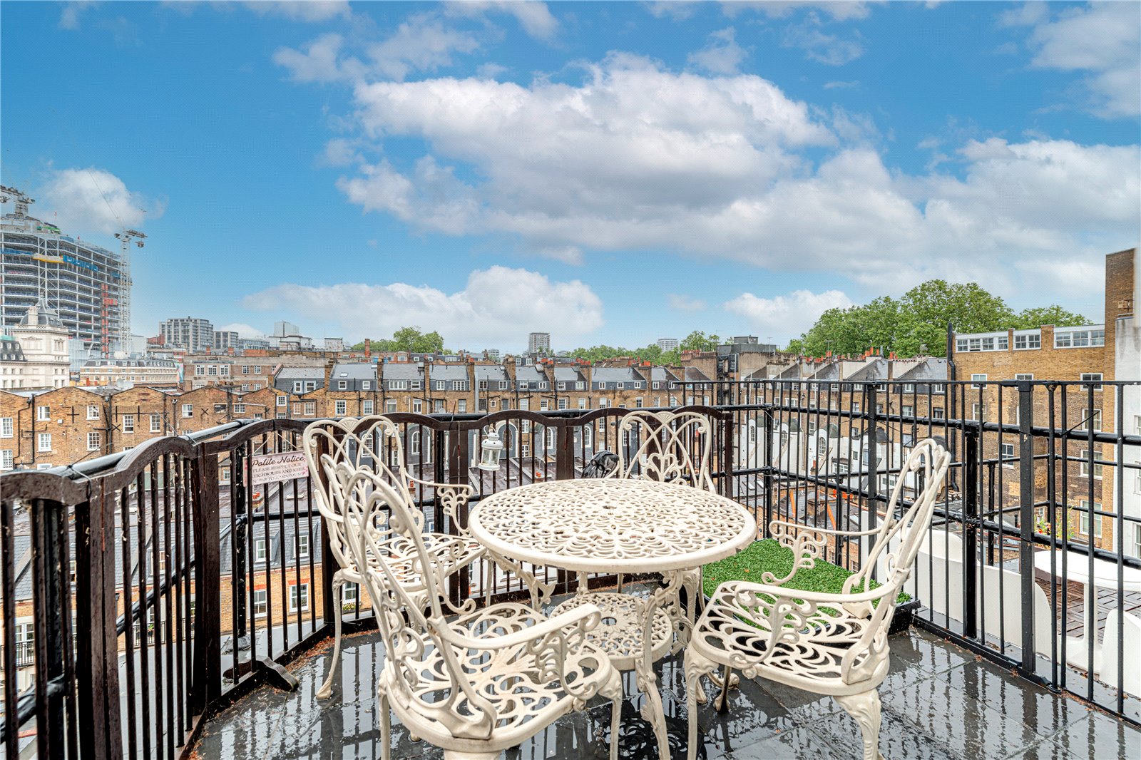 Arranged over the top floor of a white stucco residential building close to both Lancaster Gate station and Paddington station, comprising a bright open plan reception room with a fully fitted kitchen including a full fridge freezer, washer/dryer and a dishwasher. There is a family bathroom which has been recently refurbished and a double bedroom with storage and double doors leading to a private roof terrace with far reaching views.