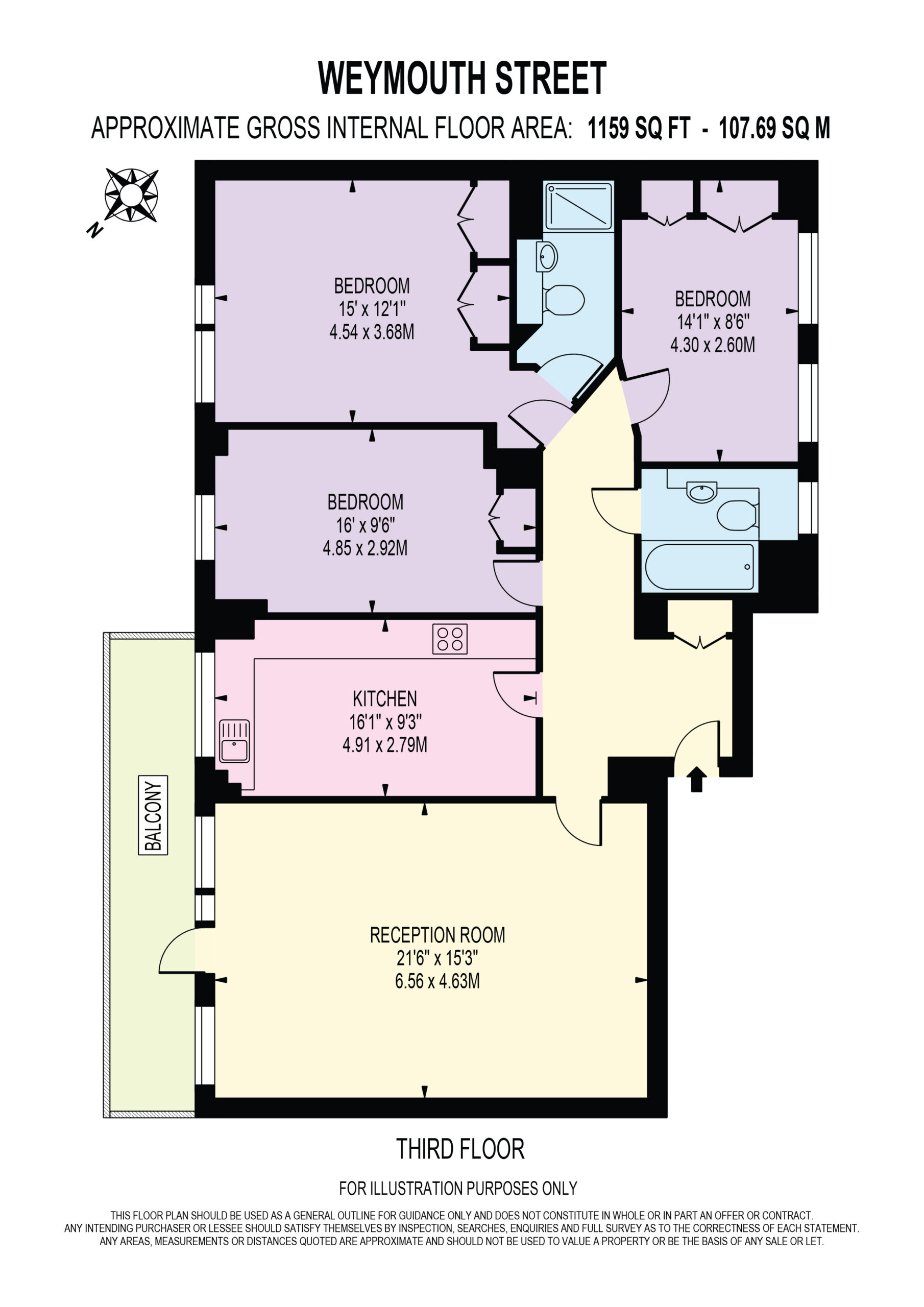 A stunning three bedroom apartment with two bathroom, a private balcony offering over 1100 sq ft, set within a sought after portered block in nestled between Marylebone and Fitzrovia.