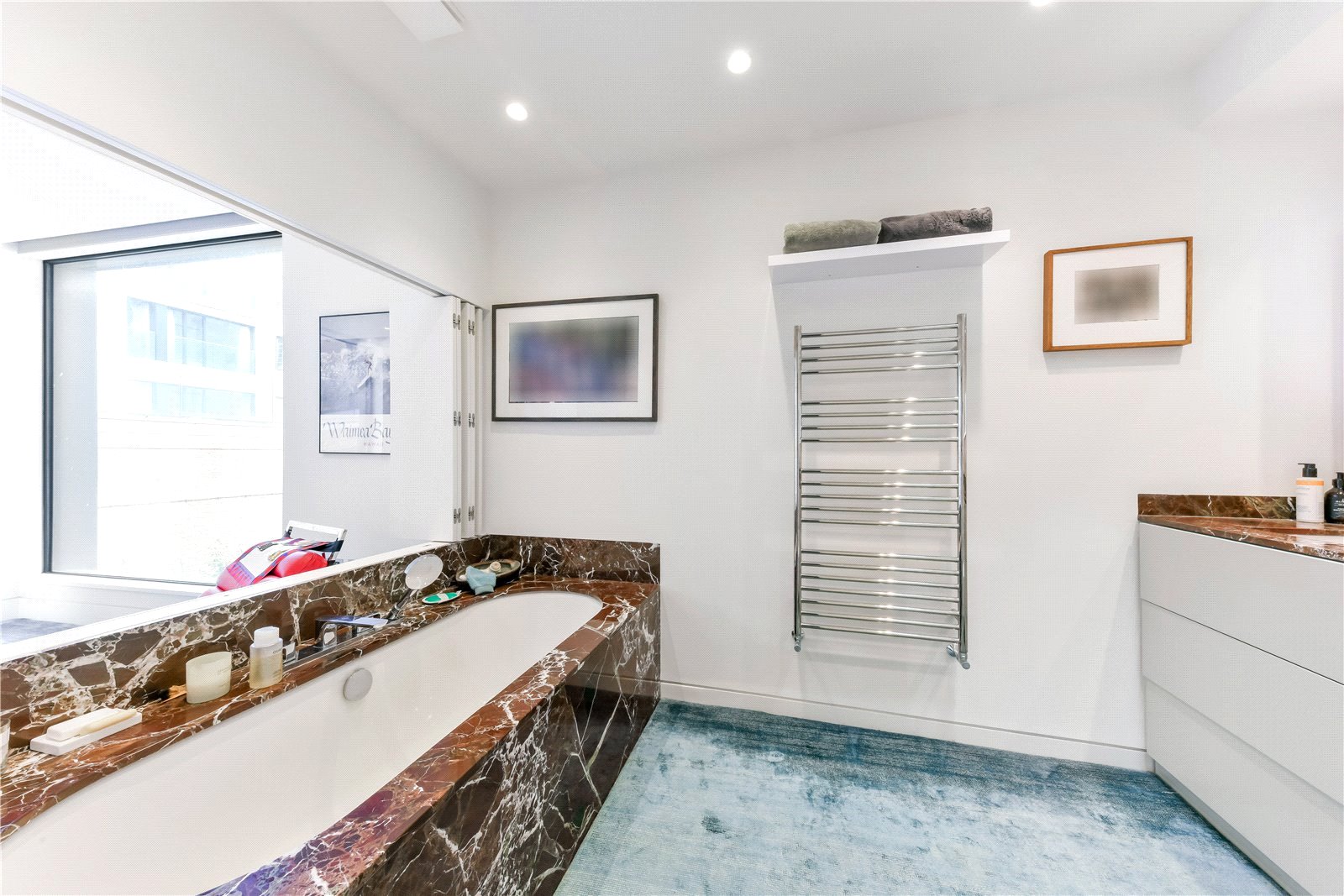 The principal bedroom occupies the entire first floor and includes a smart en-suite bathroom. Dual-aspect windows provide pleasant views across the terrace.